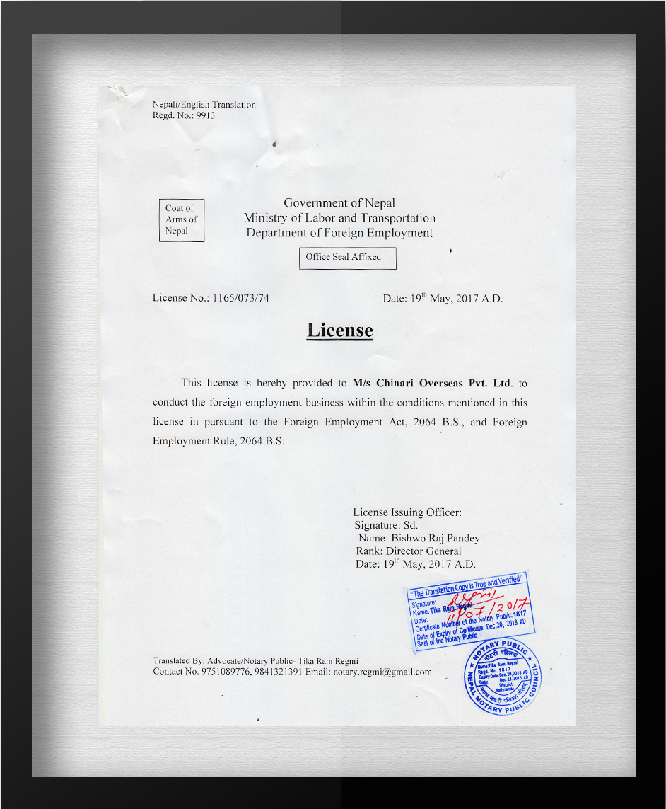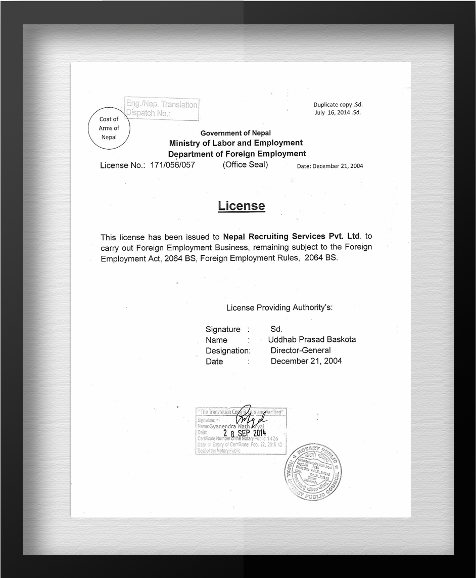 To support human resource from Nepal, the company will be acting as the representative organization.